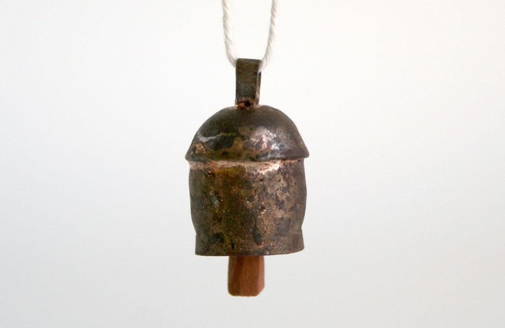 Weighing less than an ounce and just over an inch tall, this tiny bell makes a lovely party favor, ornament, or decorative addition. Made by rural artisans in a small cooperative in the Kutchi desert region of western India. Each bell is first beaten into shape by hand, then buried under the hot sand in a kiln. This age-old technique of metal-work is what gives each piece its unique patina and tone.